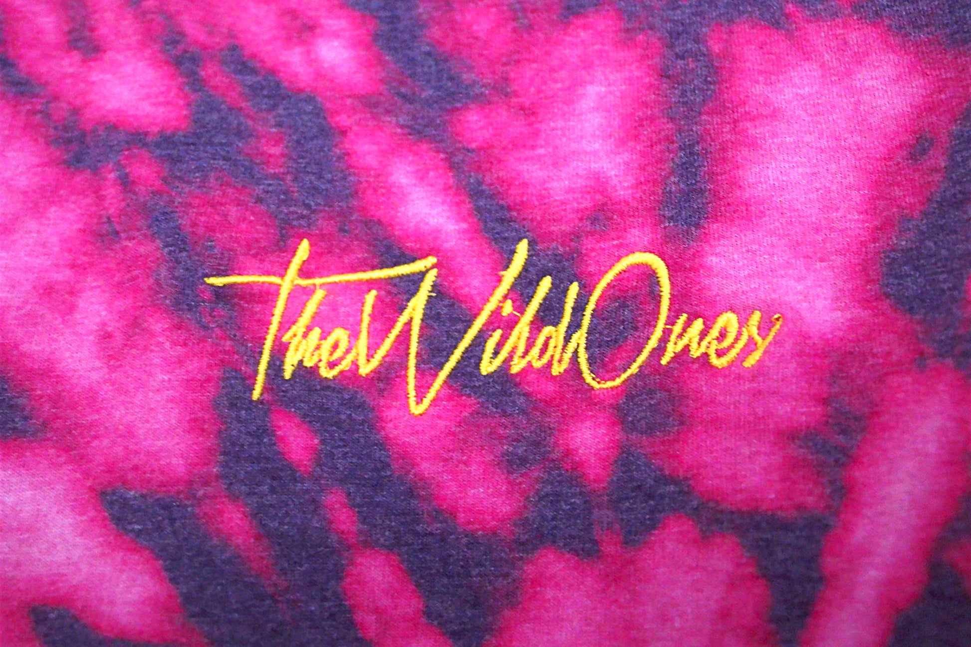 Purple and pink bleached T-shirt with holes for a grunge look. Short sleeves and crew neck. Relaxed fit. Unique piece. Signature embroidered in yellow on the back.